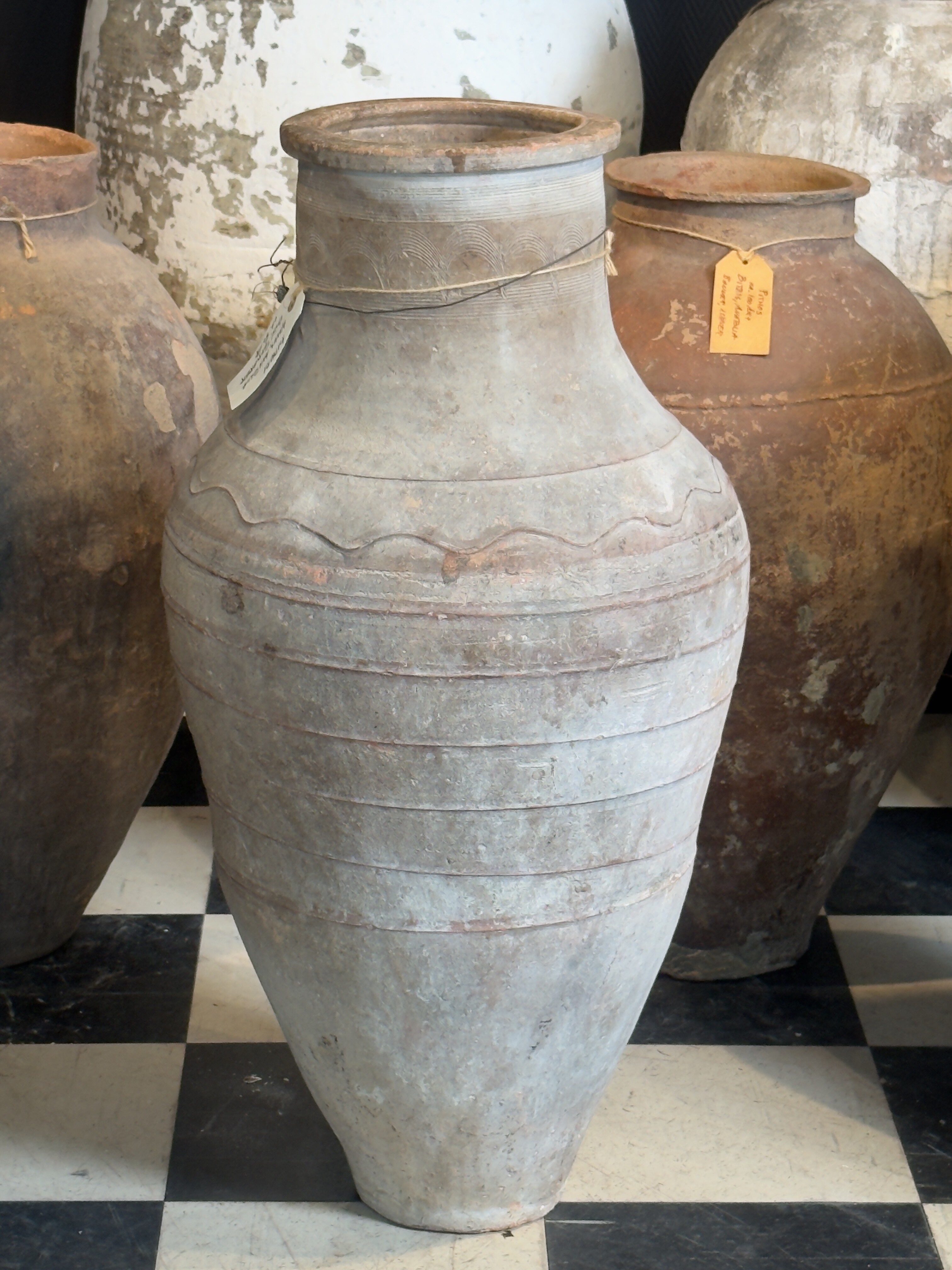 The jars were made for storage, household use, and transport, and bear traces of material practice, craftsmanship, and regional traditions.